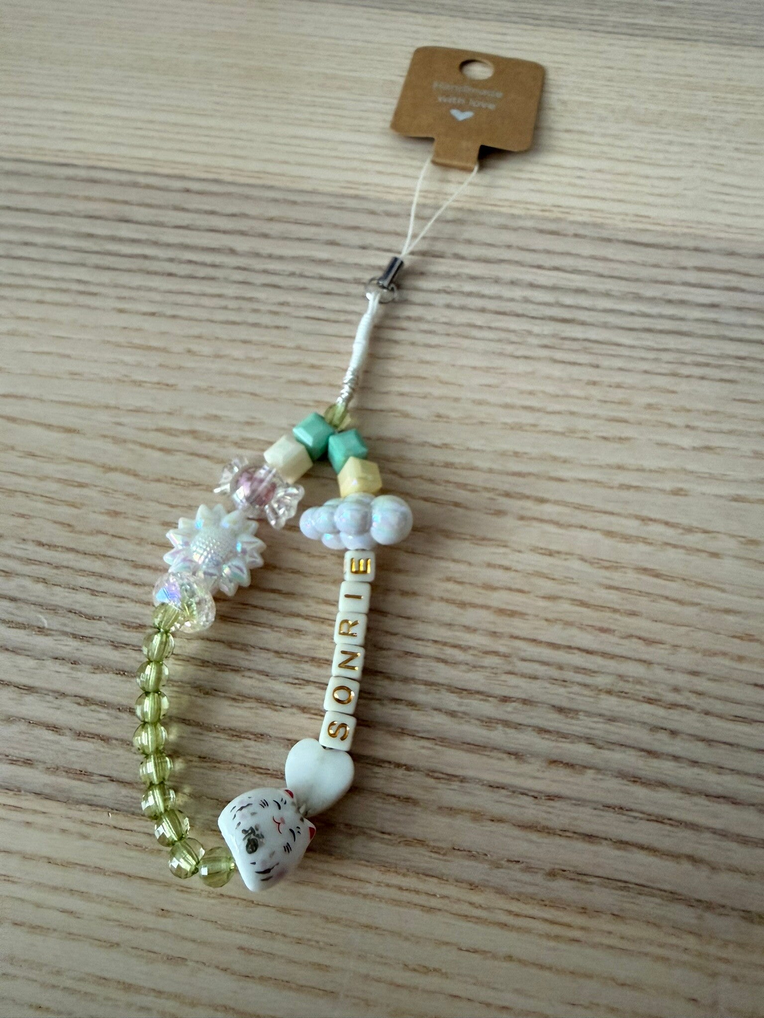 Trabajado a mano con bisutería de calidad. Puedes colgarlo donde quieras :)